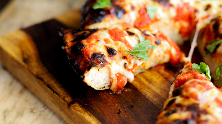 If you want to take it in a totally different direction, you could swap out the tomato sauce for a barbecue sauce or a light green pesto. You'll still want to make sure there is plenty of mozzarella cheese, though you could add a grating of a hard cheese such as Romano or Pecorino for a different flavor profile. Finish it with chili oil, hot honey, balsamic reduction, or a drizzle of olive oil. You could also add flavor with extra herbs either before or after baking, such as oregano or rosemary. Add a little kick of heat with chile flakes or Aleppo pepper flakes.