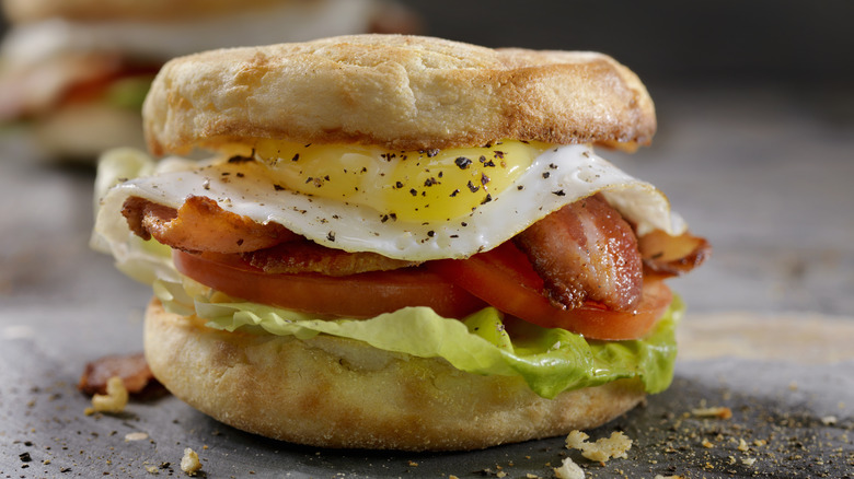 BLTs are often thought of as a lunch food. But once you introduce a fried egg to this sandwich, per Grace Vallo's suggestion, you'll find that the flavor of this sandwich is all the more breakfasty. The fried egg will complement nearly any type of bread that you select for this sandwich, including a bagel, English muffin, or a hard roll (all to keep up with the breakfast theme).
