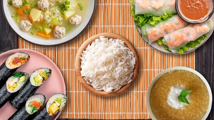 Spring rolls are a great option for a light, nutrient-dense lunch. But sometimes, you need more than just veggies, protein, and a rice paper roll to hold you over until dinner. If you're feeling a bit hungrier than usual, you may want to make your spring rolls heartier by adding some sushi rice to the recipe. Start by making your seasoned sushi rice with rice vinegar, sugar, and salt. Don't forget to cook the rice with some kombu if you really want to harness some extra flavor.