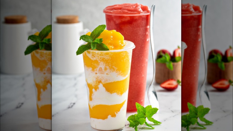 Coconut cream smoothies are a clearly winning choice whether you're looking to limit your intake of carbohydrates, thicken up a watery mix, or brighten up the tropical essence of your beverage. Whether fruit or vegetable-forward in nature, the versatility of coconut cream means that it complements most flavors. Take a sweet potato smoothie, for example. You could substitute coconut cream for the Greek yogurt in the recipe to add a hint of more sweetness with the same level of thickness to maintain the right consistency. The coconut cream will mesh well with the warming spices, banana, and dates too, giving everything a great flavor and texture.