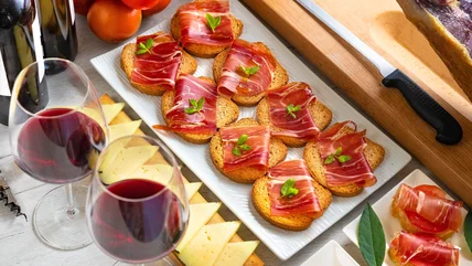 If you're serving a whole meal, expect that people will eat anywhere between 2 to 4 ounces of appetizers while they're milling about. This might look like a couple of shrimps, a little bit of crudité with dip, or maybe a few slices of cheese and crackers. You can assume about five to six light bite items in total — which should be easy to do the math for if you're shopping for pre-made apps. However, if you're skipping the sit-down meal altogether, you should double the amount of apps and assume each guest will eat between 10 to 12 bites. But then, that begs the question — is it really a dinner party, or a snack party? And if it's a snack party, can we get an invite?