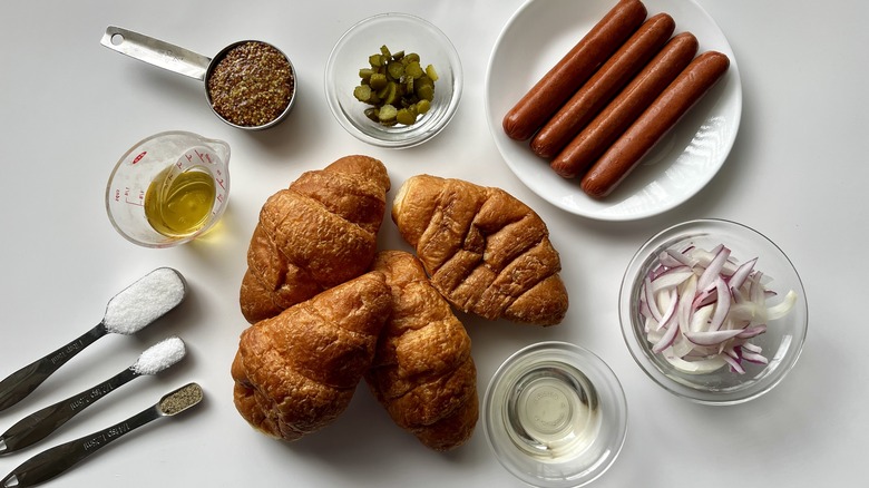 As expected, you'll need hot dogs for this recipe, and though any frank will technically work, Le Moing recommends springing for something a little more high-end to stay on theme with the recipe. You'll also need small, store-bought croissants to serve as the buns.
