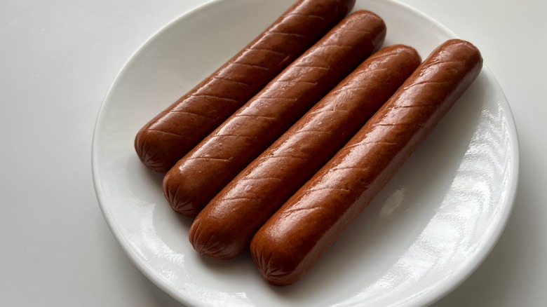 - Use a paring knife to score the hot dogs, making several diagonal slits across the surface.
