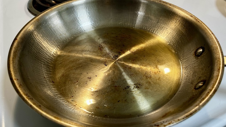 - In a large (10-inch) skillet over medium heat, heat the oil.