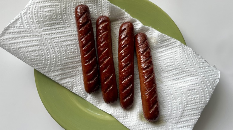 Now, before you go panicking because you don't have a grill and therefore won't be able to achieve those chic grill marks, fear not. "I don't have a grill and if you don't either, don't worry," Le Moing assures. "There's a perfectly easy method for creating those gorgeous grill marks without a grill." The key is to simply use a knife to score the hot dog yourself, then sear them on a skillet to help define the marks. Though these may be slightly fancier than your average wiener and require a few more ingredients, the process of assembling a très chic hot dog is similarly easy to assembling a non-chic one, so there's nothing stopping you from making your next backyard barbecue a whole lot more elegant.