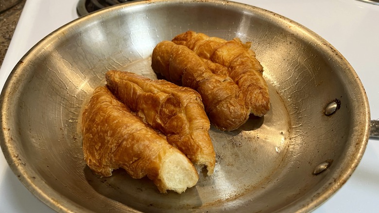 - Add croissants to the now empty skillet and cook until warm and lightly toasted.