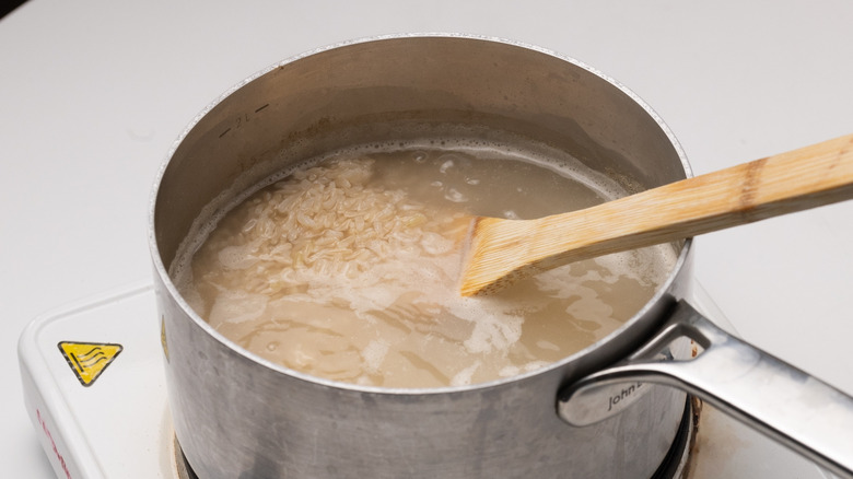 Add the rice and cook for 22 to 25 minutes, or according to the packet instructions.
