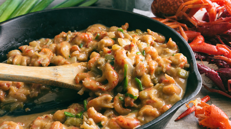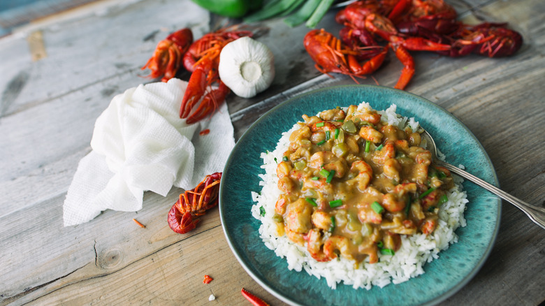 Once you've properly thawed frozen crawfish, there are just a few more things to keep in mind when incorporating them into your étouffée. They retain more water than fresh crawfish, and the extra moisture can alter the thickness of the étouffée sauce when you add them. If the sauce is too watery, all that bold flavor loses its chance to marry the crawfish to the rice, and all the ingredients will be left swimming in a soup that just doesn't taste complete. Don't panic, ma chère. You can bring that crawfish étouffée back to life in no time by adding a bit of flour to thicken your sauce. In fact, there are a few ways to approach the situation.
