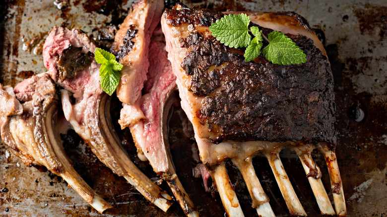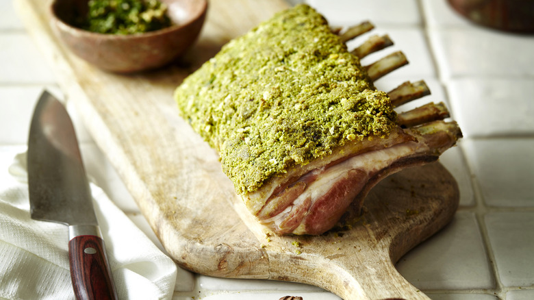You'll need a recipe to try your new skills, so consider Tasting Table's mustard-crusted rack of lamb that's ready in just about 30 minutes. Another option is to cook this rack of lamb with hazelnut gremolata. And here's a final chef-approved tip to finish it off: "[It's] important to rest your meat after cooking to allow the juices to redistribute and ensure a juicy interior,'" Baki says.