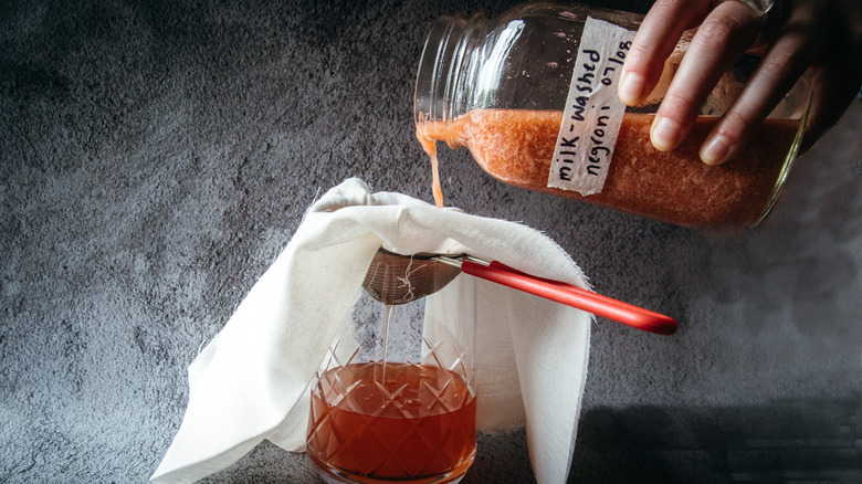According to Ksenia Prints of My Mocktail Forest, milk washing has been gaining popularity among mixologists for its ability to transform classic cocktails into new creations. While the preparation does take some patience, because the mixture needs to be clarified overnight or for a full 24 hours, the result is a sophisticated and intriguing variation of the beloved classic Negroni.