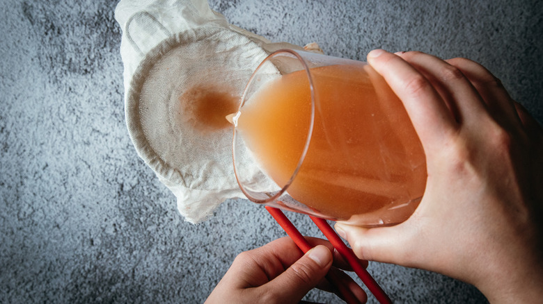 - Discard the solids, gently squeezing the cheesecloth to extract all the liquid.