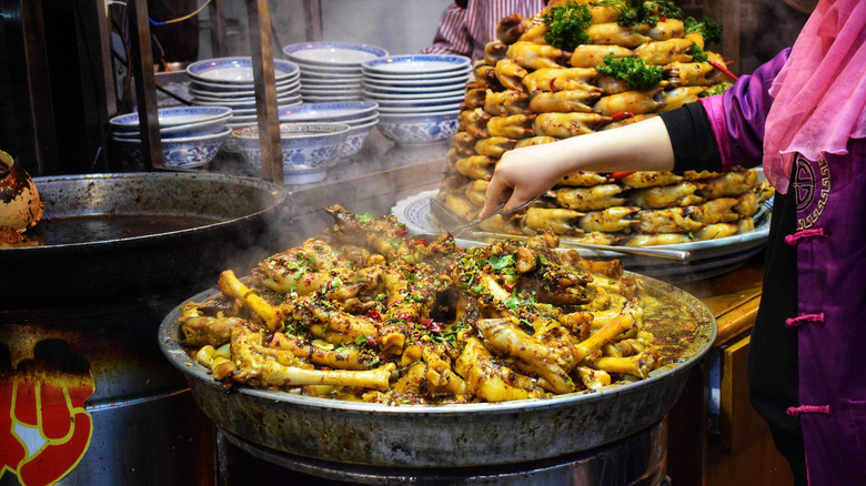 Choosing your own dish may be influenced by learning the difference between "pulled" and "ripped" noodles. The first takes the dough and stretches, slaps, twists, and rolls it into long, thin noodles. Ripped — also called "biang biang" — noodles presses the dough into flat rectangles, stretches it carefully to the desired length, and then hand-rips it down the middle to separate it into two pieces. Regardless of the choice, it's best to make it in-store to get the full Xi'an experience, as that's the only way to get the right texture and freshness. "Delivery just messes that up," Jason Wang told Munchies during one demonstration. That said, DoorDash doesn't mind delivery, nor do Xi'an fans who still gush in reviews despite the compromised authenticity.