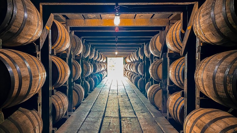 The spirit can't be distilled to more than 80% ABV, it has to enter the barrels for aging at 62.5% ABV or lower, and it can't be less than 40% ABV when it's bottled. Additionally, the barrels must be new and made with charred oak. Charring the interior of the barrels is extremely important, as the burned wood is part of what gives bourbon its iconic flavoring and coloring. To be labeled "straight bourbon," the whiskey has to be aged for at least two years. "Bottled-in-bond" bourbon follows even more stringent conditions, where it has to be aged for at least four years in a federally bonded warehouse and bottled at 50% ABV.
