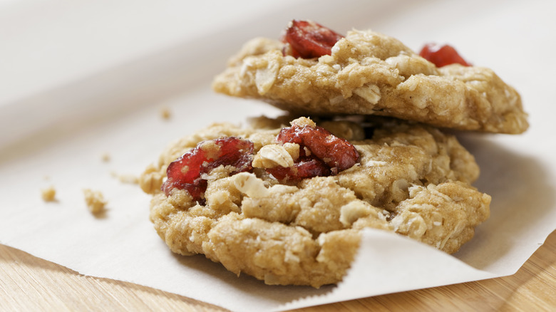 Dried fruit in oatmeal cookies certainly isn't a revolutionary concept. Of course, the best oatmeal raisin cookie recipe has dried grapes as the main addition, and with good reason. Oatmeal raisin cookies are a tried and true standard; however, there are plenty of other delicious dehydrated options ripe for the picking. While dried fruit tends to be higher in sugar than fresh equivalents, using it in your cookies means that you won't have to add as much white or brown sugar to get the same level of sweetness. Along with the vitamins in dried fruits, this strikes a healthy balance for a reduced-sugar cookie. Further, the variety of dried fruit choices available means that you can choose what works best for your dietary needs.