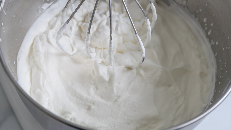 - Make the whipped cream: Once the pastry cream is chilled, in the bowl of a stand mixer, beat together the heavy cream, powdered sugar, and vanilla until firm peaks form. Set aside.