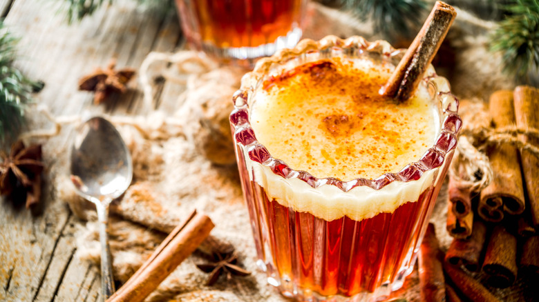 Nothing warms the soul like a hot buttered cocktail, a cozy treat balancing dessert-inspired richness with a kick of booze. Hot buttered rum, a wintertime staple in America since the 18th century, is always a classic, but there's a fresh twist in the hot buttered bourbon cocktail, swapping rum out for smoky, woody, vanilla, and caramel notes that work perfectly with the tipple's butter and baking spices. Making it is simple — just combine spiced butter with bourbon, boiling water, and your garnishes — but there is one tricky thing to figure out with hot buttered rum. You often make it in a batch when entertaining, so how do you reheat any leftovers from that batch for future servings?