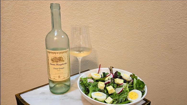 When serving this pinot grigio with food, consider options with a light flavor profile. A vegetable stir-fry would complement this wine well, as would grilled swordfish or branzino. A pasta dish like sweet pea ravioli with lobster would make an especially delicious pairing — the wine's natural acidity will cut through the richness of the shellfish, while the floral, herbal notes will enhance the earthy peas, as pinot grigio's fruitiness brings out the vegetable's sweetness. And, if you enjoy incorporating wine into your meal, Santa Margherita is one of the best white wines for cooking, as you should always cook with a wine you also want to drink.