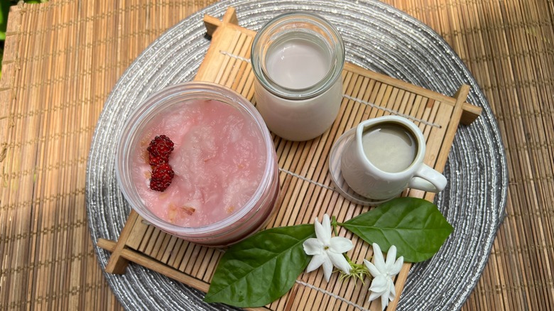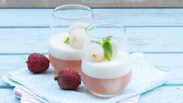 You don't have to have a cocktail to appreciate a mesmerizing and delectable beverage. There are plenty of alcohol-free options, including sodas made from various fruits. On that note, soda is not only one of the cooler and more creative ways to use lychee, but one of the easiest, too. Lychee soda can be as simple as opening a can of lychee, placing a couple pieces in a glass, and pouring in soda. In fact, you can even concoct a quick lychee soda by mixing lychee juice from a can with lemon-lime soda.