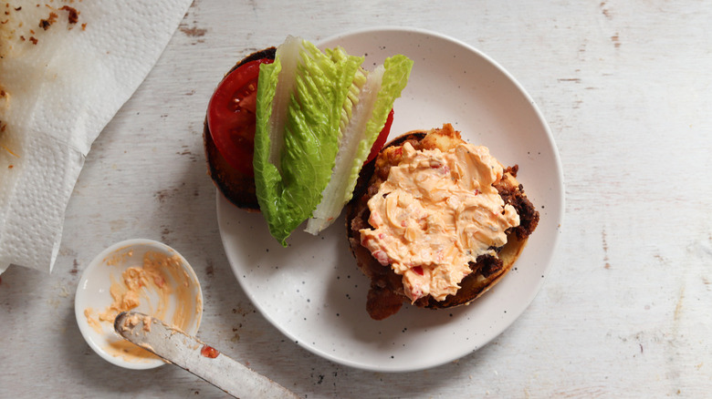 Pimento cheese is a Southern delicacy that isn't limited to the South, nor is it limited to just being a dip or spread. As this recipe proves, pimento cheese has a spot in the sandwich world, too, and the ways in which one might customize pimento cheese are nearly endless. Classic pimento cheese typically involves mayo, cream cheese, cheddar, and, of course, pimentos, though you can get creative with the inclusions you opt for and kick up the heat, add a fresh element, or swap out the cheeses.