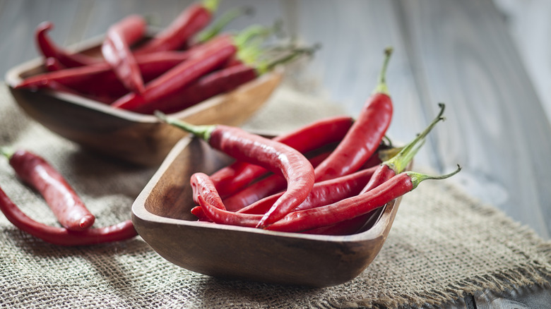 Chipotle peppers, which are actually smoked ripe jalapeños, are characterized by a delicious smoky sweetness. It makes them a popular source of heat and flavor and a staple in many kitchens. ChilliChump tells us that it's this distinct, woody smokiness that truly makes this pepper stand out as an excellent addition to sriracha sauce. Besides offering a little extra heat, their presence "transforms your sriracha into a more complex sauce with a subtle barbecue-like quality," says ChilliChump. He adds that the end result is perfectly-suited for serving with grilled foods.