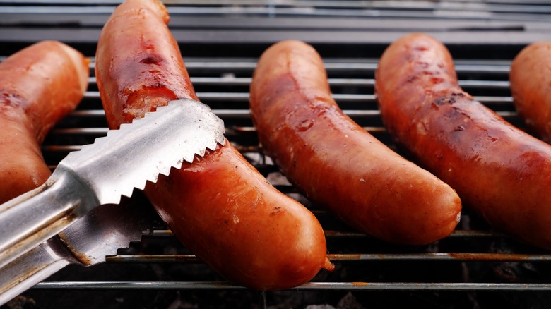 You also have to think about what you're using to flip and rotate your sausages as you're cooking them on the grill. "Avoid poking or piercing sausages with a fork or knife," says Grace Vallo. "This can make them dry. Use tongs to turn them gently."