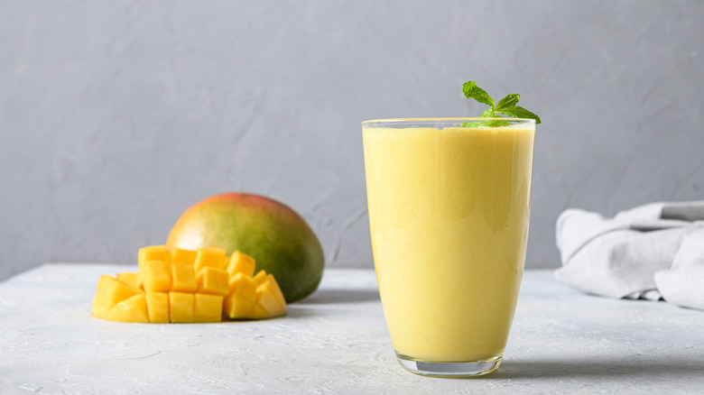 The refreshing and cool mango lassi is a fan favorite when it comes to Indian cuisine. Originating in the Punjab region of India around 1000 B.C., the lassi, which refers to general yogurt-based beverages, is often considered the first smoothie. Lassis, and specifically the mango lassi, have many anti-inflammatory and immune-boosting benefits, thanks to supportive ingredients like Greek yogurt, ginger, turmeric, and mango. There are various ways to make a mango lassi — many modern ones use lime, while others add rosewater — but one unique way is swapping yogurt with buttermilk for a Southern twist on the drink, courtesy of celebrity chef Alton Brown.