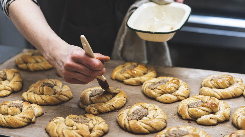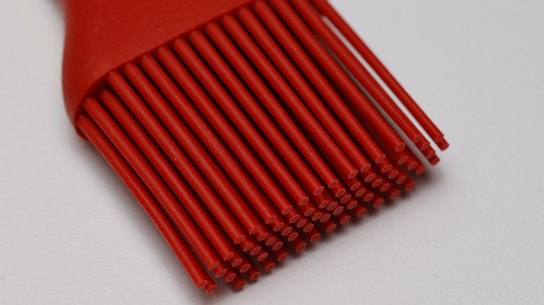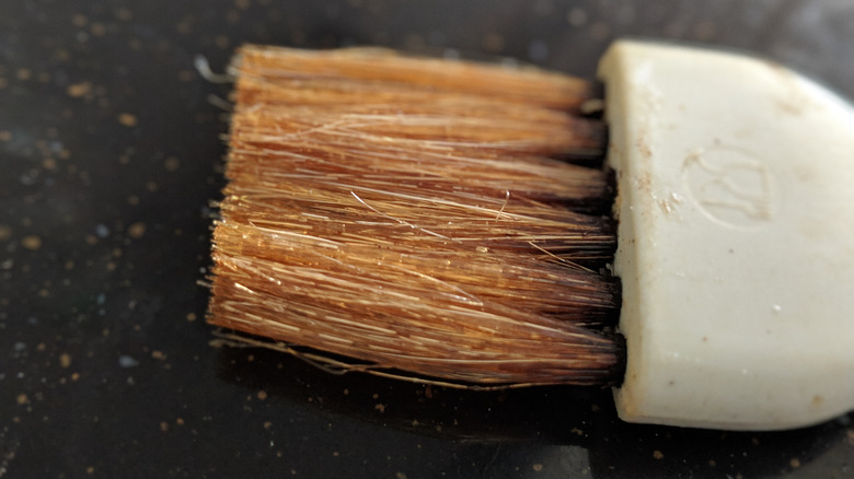 The last main difference between these types of brushes is their durability. Over time, the individual bristles in natural brushes can work loose. This can be an annoyance if you're picking loose hairs off the top of your pastry dough. Bald patches also make your brush less effective since they can't spread liquids as evenly. Like any hair, natural bristles can be damaged by heat, so if you're ever reaching into a hot oven to spread a glaze, you can singe your brush. Meanwhile, silicone won't be scathed by high heat, making it a better choice for basting food that you're cooking in the oven or on the grill.