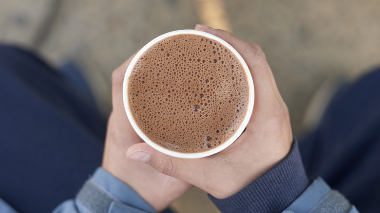 Even if you pick up packets of premade hot chocolate from the store, the quickest route to enhanced flavor can be had with a simple splash of coffee creamer. Combine Starbucks' cinnamon dolce latte or vanilla latte coffee creamers into your cup of mixed chocolate, or try adding one of Coffee Mate's seasonal flavors for a flavorful twist on this classic favorite. Peppermint mocha, Kit Kat, and caramel apple crisp invite a variety of sweet layers to traditional cups of hot chocolate and turn a beloved beverage into a liquid treat that could be understandably mistaken for dessert.