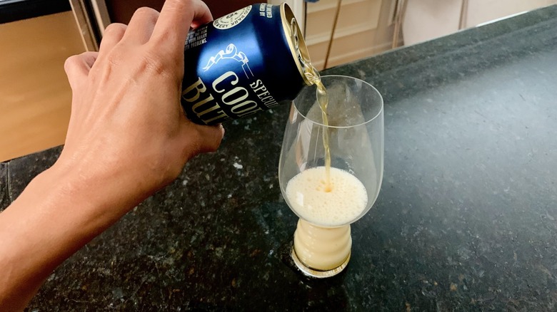 Trader Joe's has thoughtfully printed two specific recommendations on the can for how to enjoy Speculoos Cookie Butter Beer. First, the company suggests that you "Savor at 40°F." I tried the beer at both 50 and 40 degrees Fahrenheit, and the colder temperature made a noticeable difference. The beer became brighter, less intense, and overall easier to drink. The second recommendation is to "Pour slowly into a stem glass." Using a stem glass enhances the drinking experience by providing temperature control and allowing for swirling. The stem prevents your hands from warming the beer, while swirling releases the aroma and opens up the beer's flavor.