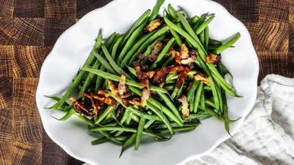 This sweet, savory dish makes a hearty side that can be served with balsamic-glazed pork tenderloin or meaty braised brisket mac and cheese. The bacon and brown sugar lend tons of flavor to the green beans, but you can balance it out by adding tangy Dijon mustard, savory soy sauce, or sharp white vinegar to the brown sugar and butter mix.