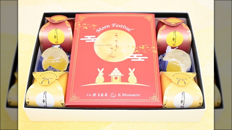 For smaller assortments that center mooncakes over Japanese wagashi, opt for the Mid-Autumn Gift Box Large for $75.60 with four mooncakes, apple jelly, and usagi san — a bunny-shaped bean cake, or the Mid-Autumn Gift Box Medium for $54.50 to enjoy six mooncakes and three apple jellies.
