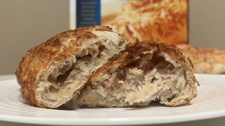 If you want the flavor of the bake at home, the package of six comes out to about $2.25 per bake. It still has the cheesy chicken Caesar taste, the bacon pieces, and the bonus green onion that I didn't see in the food court one. It still tastes acceptable, and there are ways to improve the flavor; some suggest brushing the sandwich with Caesar dressing before baking, while others claim microwaving the bake for two minutes before tossing it in the oven ensures even cooking. But even so, the frozen bake is just not one of Costco's best prepared foods. You'll likely pick up on the discrepancies if you're a big fan or regular eater of the food court version. Since the food court bake is larger than the frozen, it's not much more expensive, and you save yourself the 35 minutes it takes to bake.