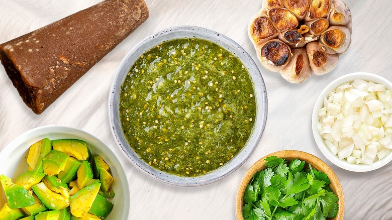 While the classic salsa verde recipe is rather rudimentary and is often made with the same combination of peppers, herbs, and base ingredients, there are a ton of exciting add-ins that you can use to add more texture and flavor to your recipe. We consulted with two experts — Michelin-honored chef Carlos Gaytán from Tzuco in Chicago, and Erasmo "Ras" Casiano from Colorado's Lucina Eatery and Bar and Xiquita — to learn more about how to make salsa verde, and which additional ingredients will take it to a new level.