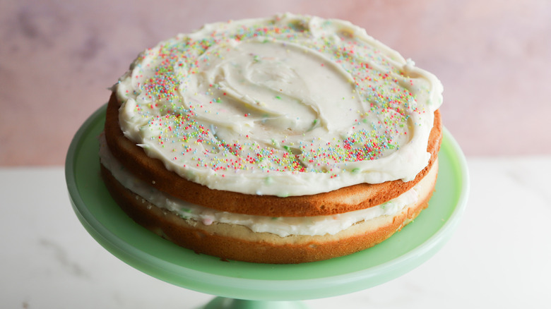 You also shouldn't mistake coconut cream for cream of coconut. Though they have an almost identical name, they are not the same product. Cream of coconut has added sugars and differs from coconut cream in consistency and flavor — it's dense, syrupy, and sweet to the taste, so it's commonly used in mixed drinks, like a cool and refreshing piña colada. Coconut cream, in turn, is unsweetened and has a creamy texture with a strong coconut flavor. Aside from cake, you can use it as a thickener in other desserts, smoothie bowls, and even savory dishes such as stews (we're currently obsessed with this spicy coconut peanut soup).