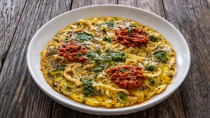 Give Your Breakfast Egg Scramble An Italian Twist And Add Pasta