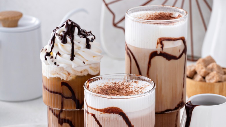 There are so many ways to boost your frozen hot chocolate to new heights. For adults, try adding a splash of Kahlúa — the liqueur that chef Duff Goldman claims makes every dessert better. This infuses the drink with a coffee flavor. Top it off with a generous swirl of whipped cream and a drizzle of salted caramel sauce, perfectly blending sweet and salty flavors. To finish, sprinkle with crushed cookies, peppermints, or nuts for texture and visual appeal. Play around with other toppings and add-ins like hot fudge sauce, fresh fruits, or a shot of espresso to switch things up. These simple yet decadent additions will transform your frozen hot chocolate from basic to extraordinary.