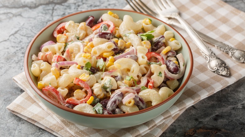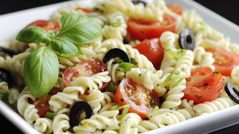 Pasta salad is a quintessential summertime staple. From creamy macaroni salad to vinegary Italian pasta salad, it's always present in some shape or form at family barbecues and celebrations. If you've been put on pasta salad duty this year, you're in luck. The base recipe is simple, but there are a myriad of recipes and tips you need to make the ultimate pasta salad, like making sure your proportions are correct, using the right pasta shape, and making your own dressing from scratch. And, if you're tight on time, freeze your pasta salad ahead of time so you don't have to worry about showing up empty-handed.