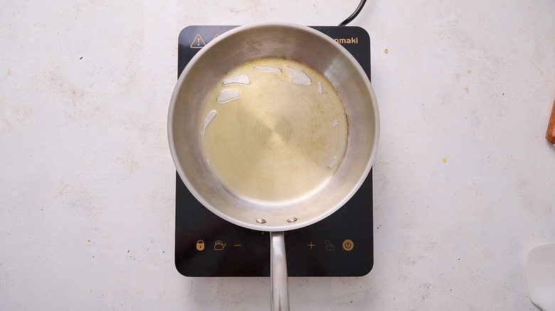 - In the meantime, prepare the filling. Heat the oil in a skillet over medium heat.