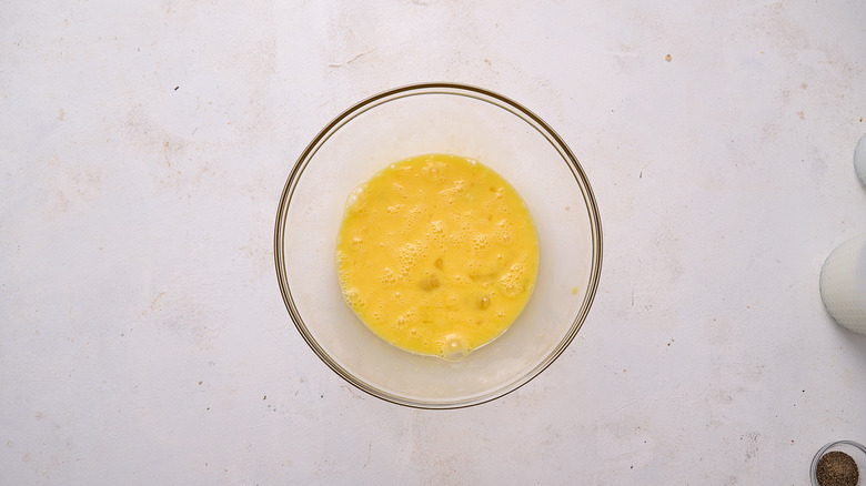 - In a large bowl, whisk together the eggs until smooth.