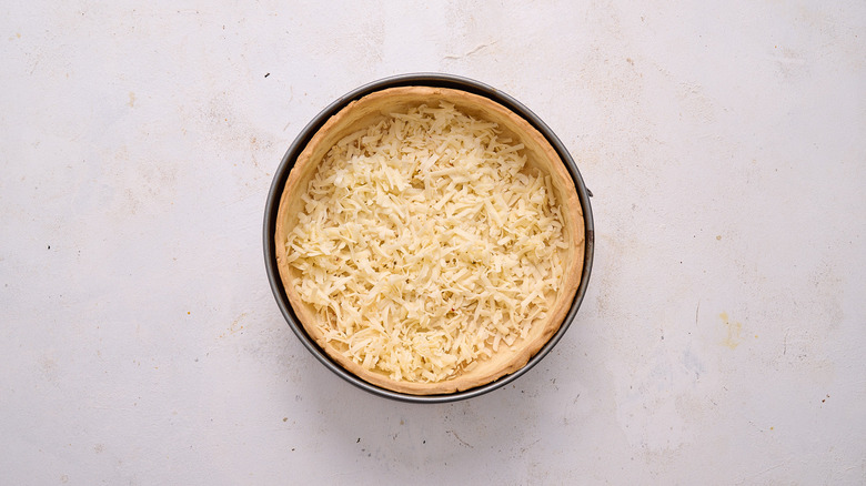 Step 16: Sprinkle cheese into the quiche shell