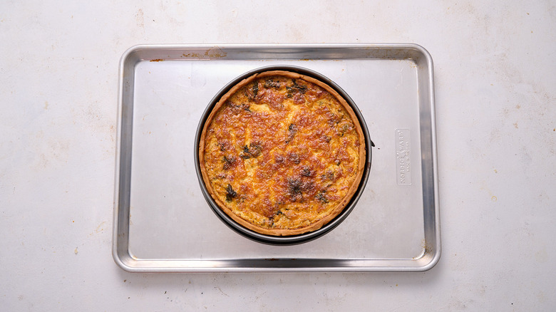 - Place the quiche on a sheet tray.