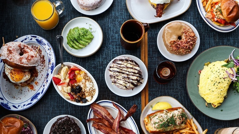 Pancake Social is the kind of place that you instantly fall in love with. Its nostalgic interior presents a warm and welcoming vibe that's perfect for a laid-back weekend brunch. As the name suggests, pancakes are the star here, whether they're flavored with classic buttermilk, gluten-free banana and oat, or lemon ricotta. If you're not in the mood for a sweet stack, you'll find plenty of savory options on the menu, too. Avocado toast, eggs Benedict, and a creamy grits bowl are all mouthwatering options, as are more lunch-leaning options like a juicy patty melt.