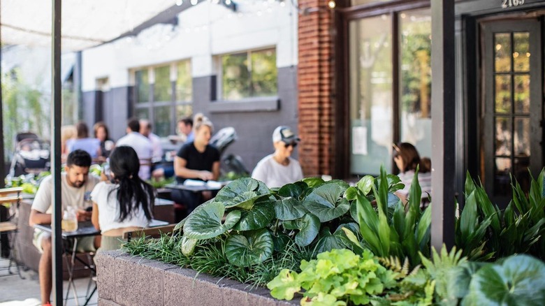The venue specializes in sourdough bread, baked daily and starring in a suite of stacked toasts topped with fresh ingredients like avocado, smoked salmon, or heirloom tomatoes, or served alongside simple scrambled eggs and lightly dressed greens. The sourdough cinnamon roll brings a bit of decadence to your morning meal. Handcrafted coffee drinks, smoothies, and cocktails round out the refreshing offerings. If the weather takes a turn for the dreary, you can always cozy up to one of the tables inside, surrounded by leafy greenery.