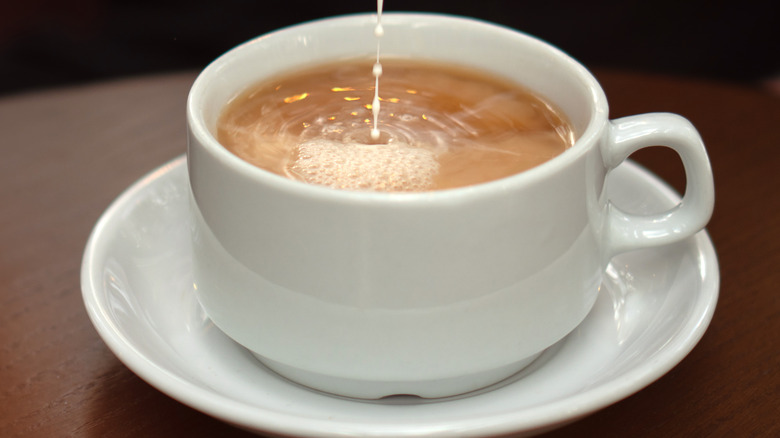 With the popularity of boba milk tea surging, more and more people are adding milk to their teas. It's a practice common in the United Kingdom, and stems back centuries, starting in Asia. While black tea is enjoyable on its own, adding a little milk changes the texture and enhances the drink with creaminess. If you're wondering what a good ratio to follow is when drinking black tea with milk at home, we've got the answer for you — one part milk or cream and three parts black tea.