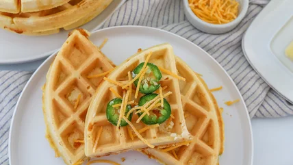 For those looking to explore new flavors, this recipe is a must-try, offering a deliciously different approach to the classic waffle. They're also simple to throw together with a handful of pantry staples, so grab your waffle iron and try out these savory jalapeño cheddar waffles.