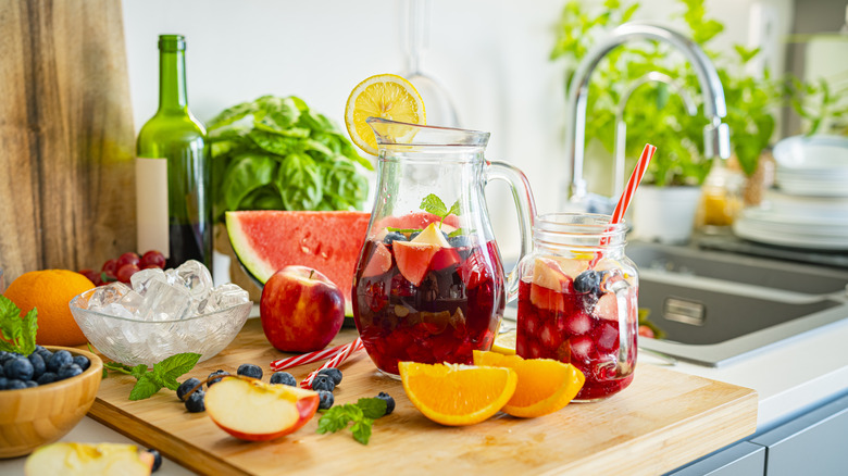 When we asked Goldstein if cheap wine was okay, she said, "Of course! The only rule is to use a wine that you would feel comfortable drinking as a glass alone. That bottle could be any price point." As Goldstein points out, it's not the price point that matters. But at the same time, this isn't a blank check saying every bottle of wine under the sun is going to produce a great sangria. There are some types of wine you should avoid when making sangria, primarily wines that are too sweet or too tannic to play nicely with the other ingredients.