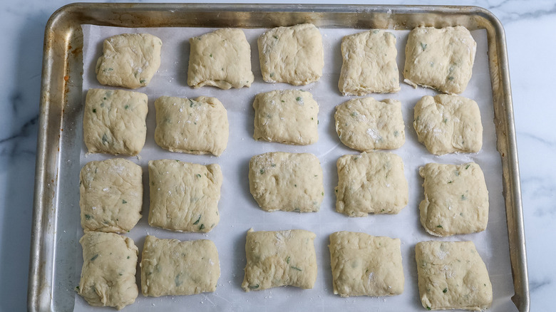 Cut the dough into 1 ½-inch to 2-inch squares.