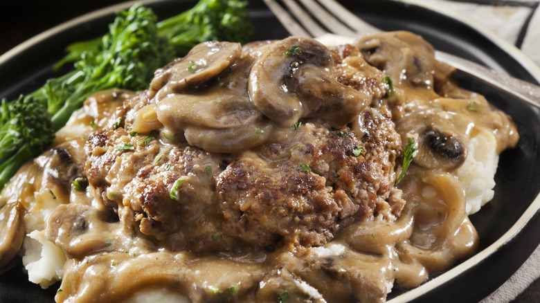 We wouldn't have Salisbury steak without American physician Dr. James Henry Salisbury, who promoted beef as an essential part of the post-Civil War diet. Salisbury noticed that soldiers were facing malnutrition and studied how protein, specifically beef, could help improve body condition and give them the vitality they needed. Moreover, he determined that integrating chopped beef into the diet, in the form of these hamburger-like patties, was a great way to get those nutrients into hungry bodies. The gravy was just a bonus.