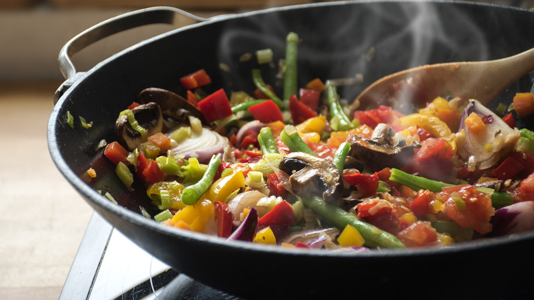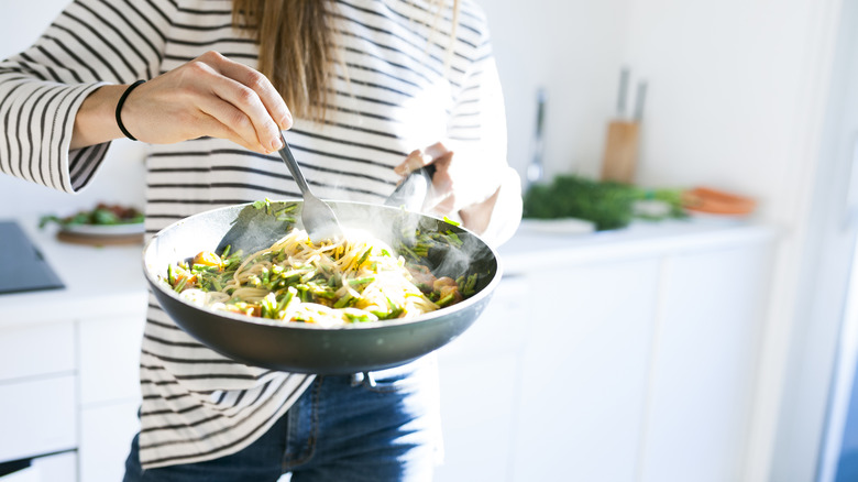 When I'm using only one vegetable, I like using zucchini chunks or green beans. I sauté them in a drizzle of olive oil over medium heat for between five and 10 minutes depending on how hardy the vegetable is. As they're busy cooking, I add in a couple of drops of Yondu. It enhances a vegetable's own great taste without being too saline or potent.