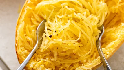 If you cook the halves for too long, they will become too tender, thwarting the separation of the flesh into spaghetti noodle look-alikes. Other factors like size, freshness, and differences in appliances also affect spaghetti squash cooking times, so it's best to err on the side of caution and begin checking the doneness of your squash at the shortest end of the cooking time range. A fork test will indicate that your squash is ready; a fork should be able to pierce the skin of the squash with minimal effort.